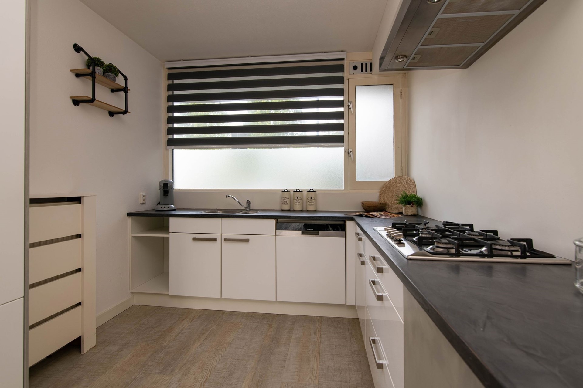 - Het gehele appartement is voorzien van een keurige laminaat tegelvloer.